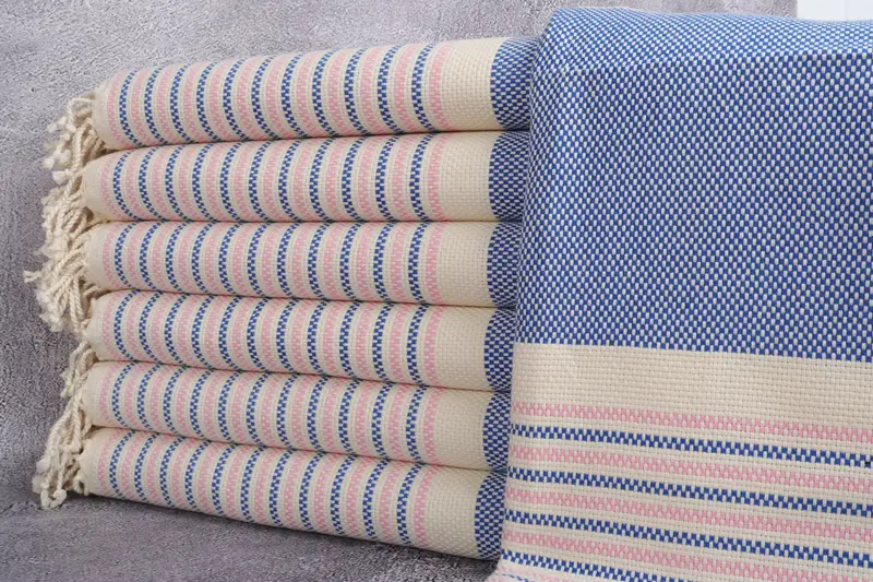 Bath Towel Organic Cotton Geometric Peshtemal Pink and Sax Blue 40x71 Inches
