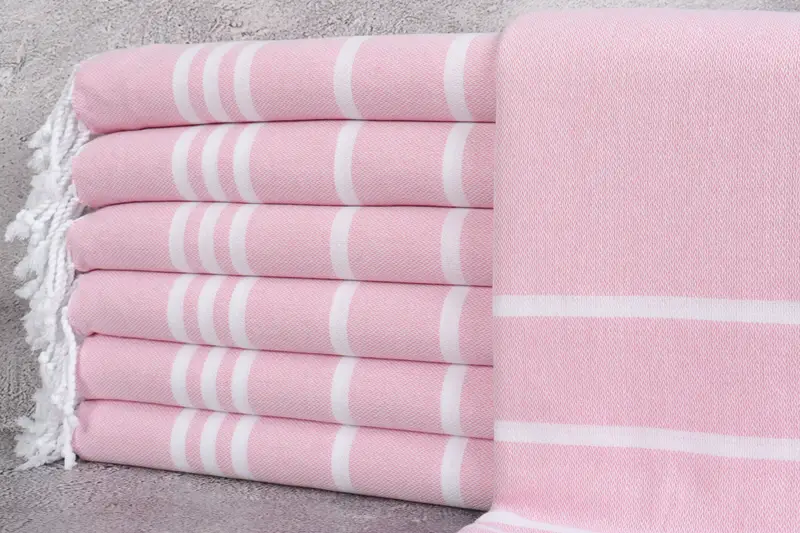 Turkish Beach Towel, Striped Pink Peshtemal, 40x71 Inches