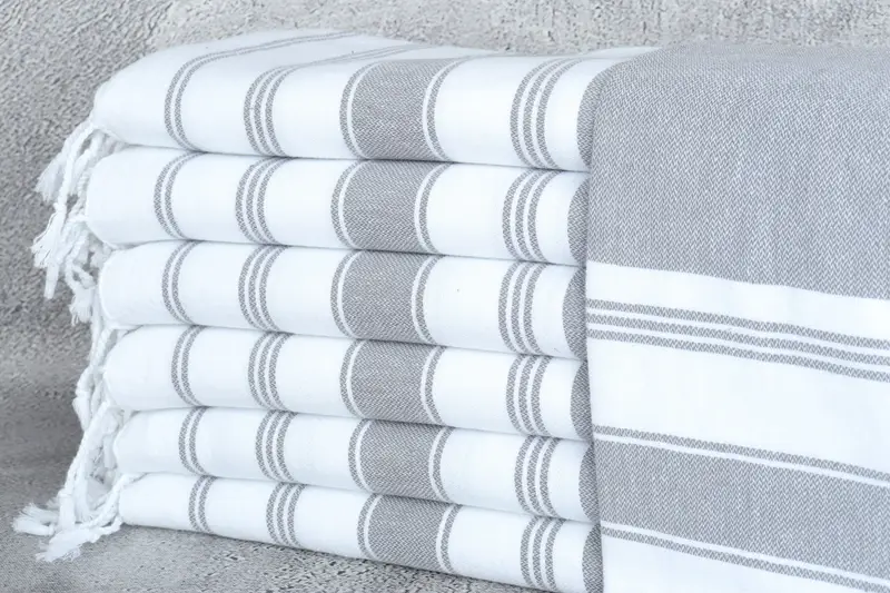 Custom Embroidered Gray Striped Hand Towel, 24x44 Inches