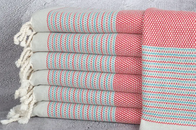 Cotton Tea Towel Red-Blue Striped, 20x36 Inches, Beige Secondary
