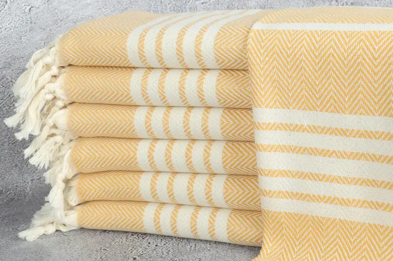 Custom Kitchen Towel Embroidered Mustard Striped Decor Dish Towel, 20x40 Inches