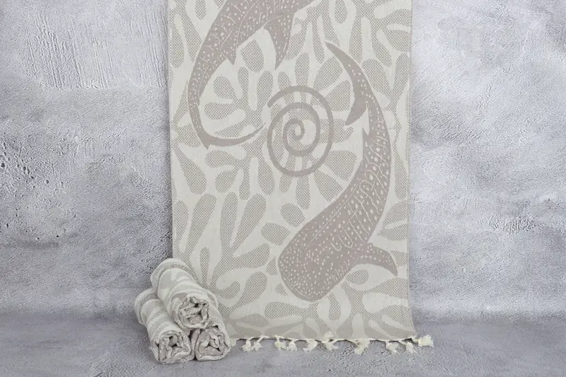 Hanging Kitchen Towel, Brown Fish Pattern, Beige, 38x18 Inches