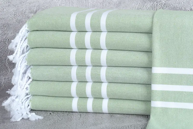 Customized Hand Towel, Embroidered Dish Towel, Green, Beige Stripes, 18x40 Inches