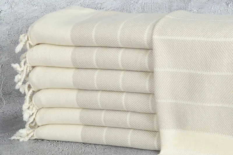 Personalized Hand Towel Beige Herringbone, Kitchen & Tea Towel, 18x40 Inches