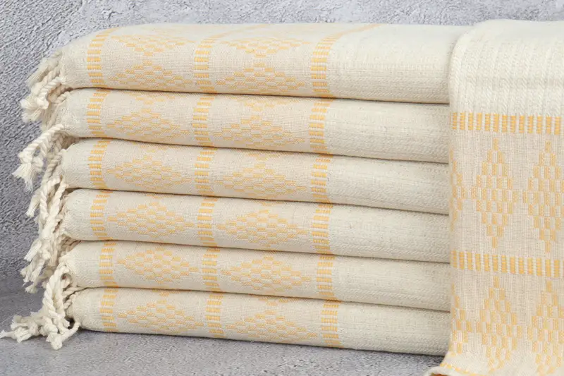 Custom Hand Towel Mustard Kilim Design, Beige, Linen, 20x40 Inches