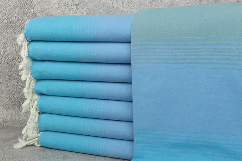 Striped Towel Petrol Green-Turquoise Cotton, 36x67 Inches