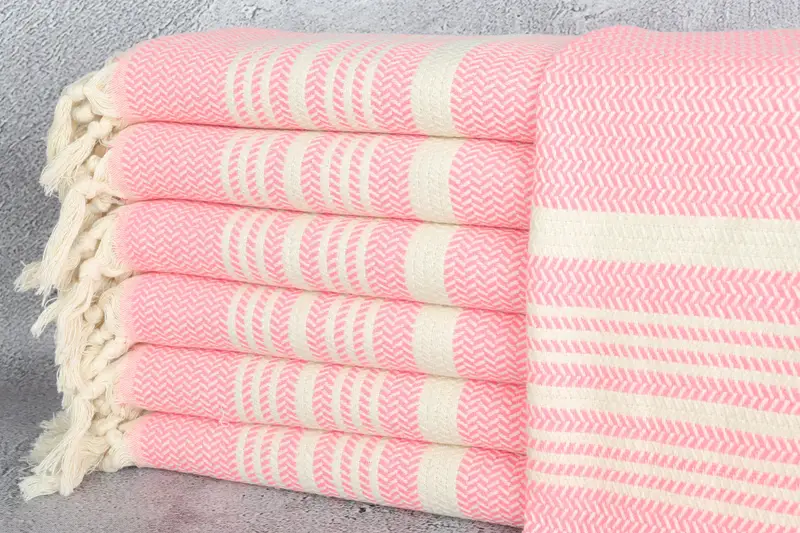 Monogrammed Tea Towel Customized Bright Pink Striped, Beige, 18x40 Inches