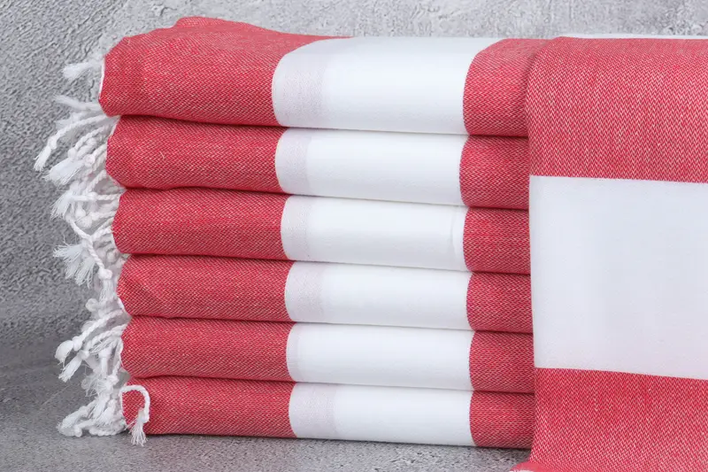 Monogram Kitchen Towel Organic Red Striped, 24x40 Inches