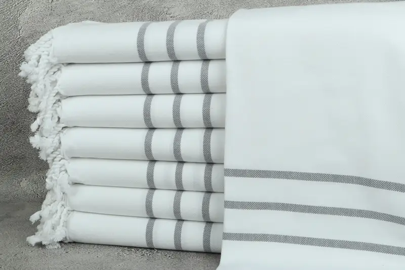 Dark Gray Cotton Striped Bath Towel, 40x71 Inches