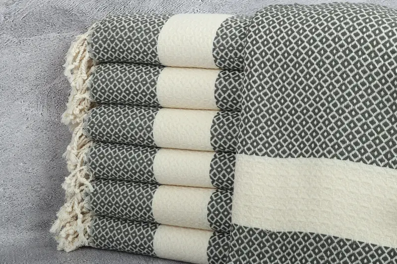 Geometric Towel Dark Green Cotton 40x71 Inches, Rustic & Primitive