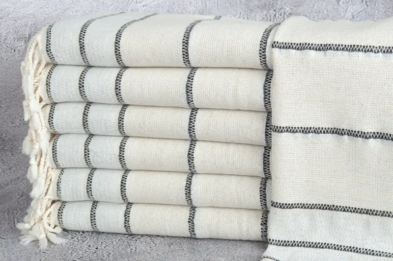 Light Gray Striped Turkish Towel, Linen, 20x40 Inches, Bath Towel
