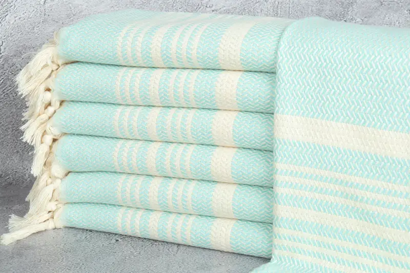 Personalized Turkish Hand Towel Mint Striped Beige, 18x40 Inches