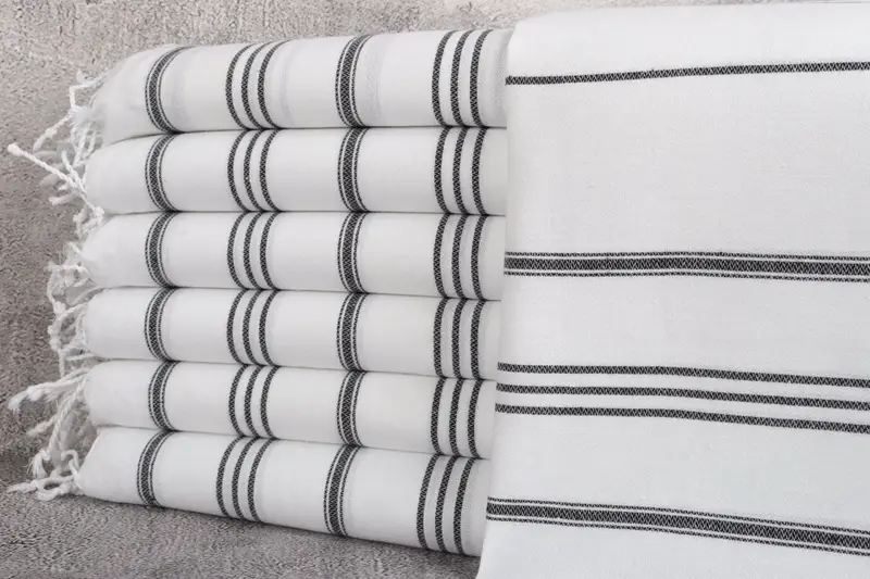Kitchen Towel Turkish Cotton Black Stripes, Beige, 24x36 Inches