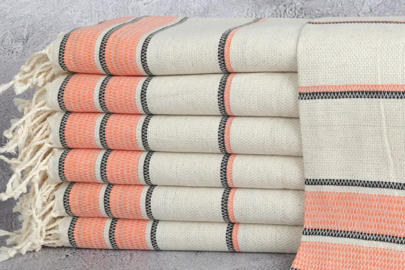 Monogram Tea Towel Embroidered Orange Striped Turkish Towel, Beige, 20x40 Inches