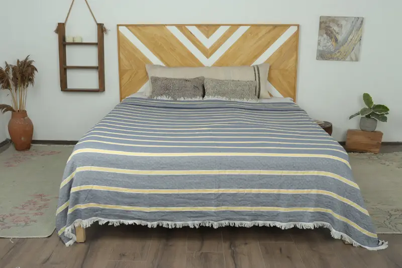 Couch Throw Navy Blue-Yellow Striped Throw, 83x95 Inches