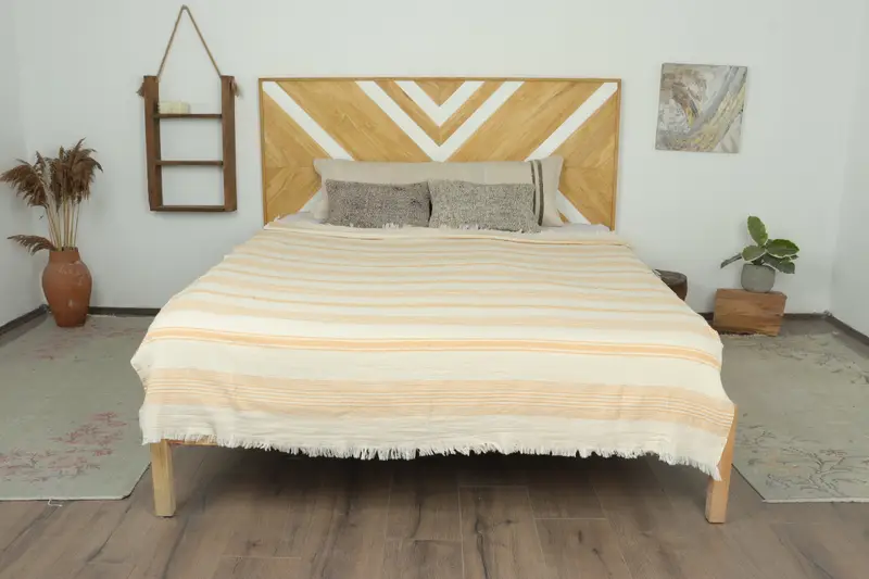 Wholesale Mustard Striped Blanket Organic Cotton Throw, 77x95 Inches