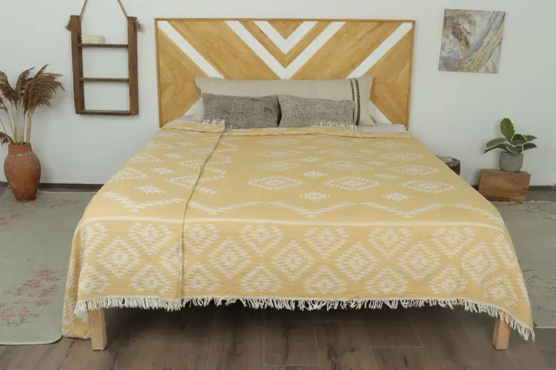 Organic Cotton Blanket Mustard Beige, 56x83 Inches