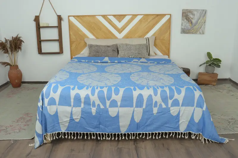 Petrol Blue Throw Animal Print Blanket, 79x99 Inches Cotton