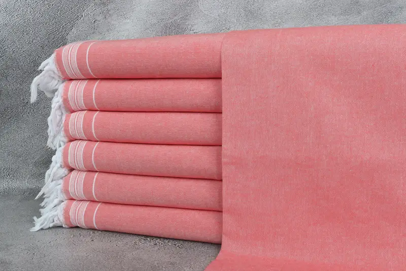 Monogram Light Red Cotton Striped Blanket, 56x91, Recycled Organic