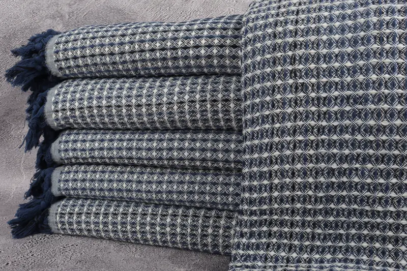 Handmade Turkish Blanket Striped Navy Beige, 71x95 Inches