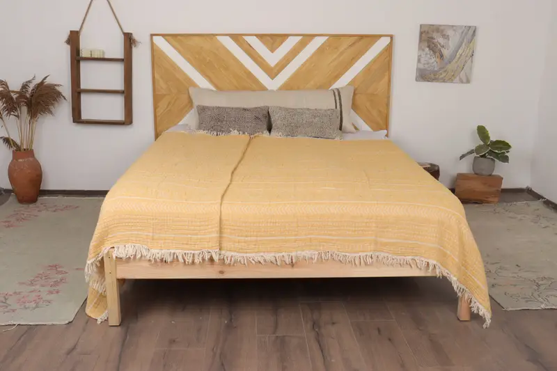 Turkish Blanket Ethnic Design Yellow Throw, 56x75 Inches