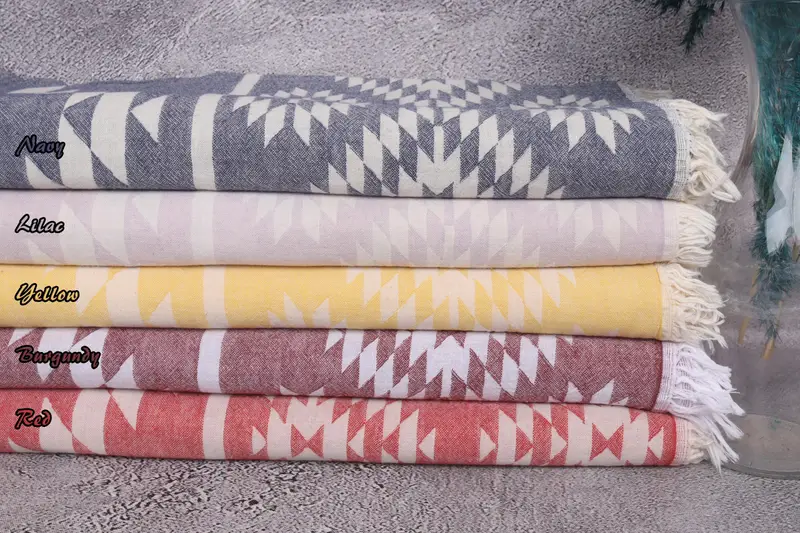 Bachelorette Favors Turkish Cotton Beige Geometric Blanket, 56x83 Inches