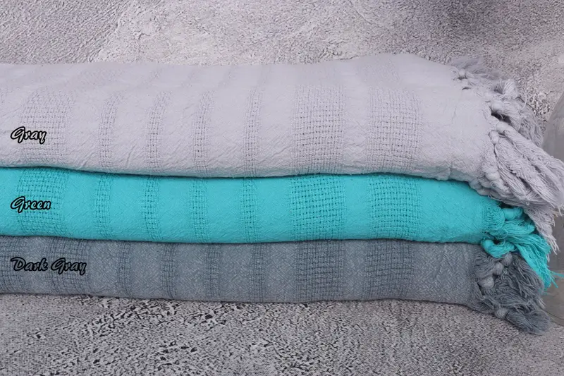Stonewashed Striped Blanket, Woven Throw, 67x95 Inches, Cotton, Beige
