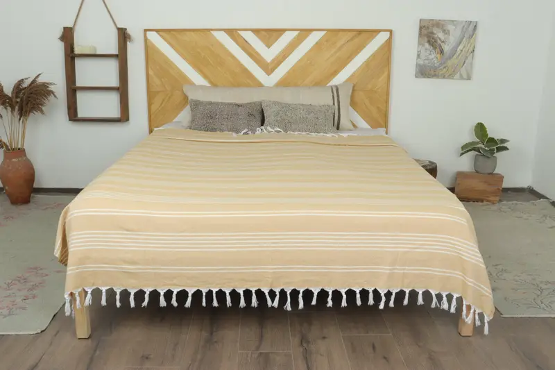 Custom Mustard Throw Striped Blanket, Organic 71x95 Inches
