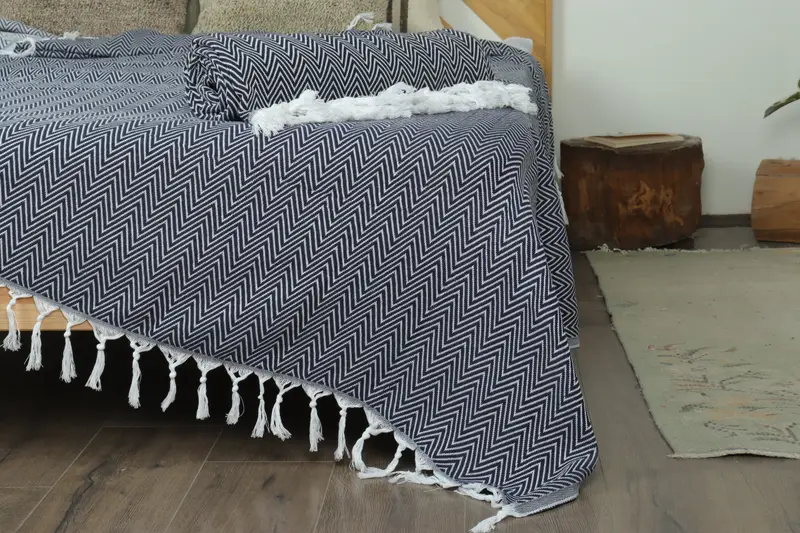 Picnic Blanket Navy Beige Chevron, Beach Blanket 71x87 Inches