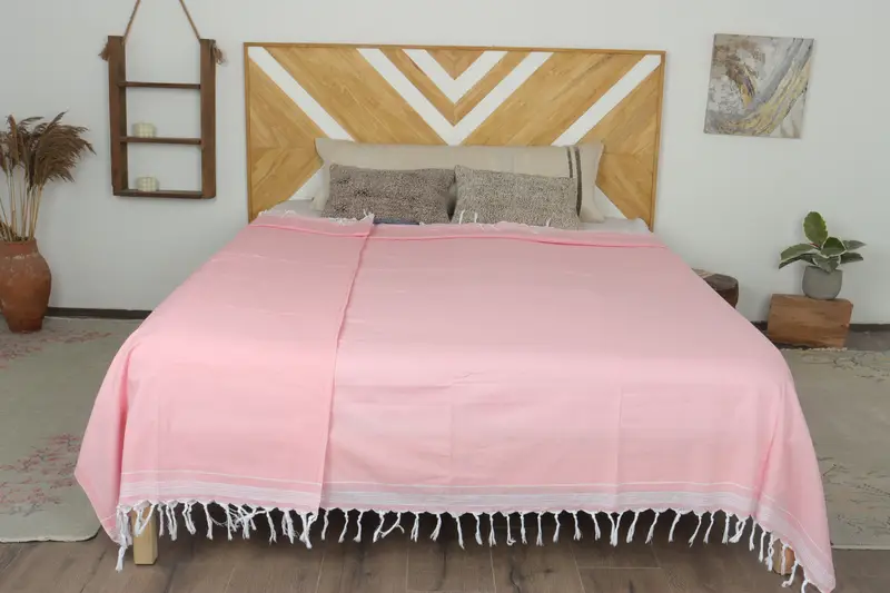 Wholesale Pink Striped Blanket, Beige, Turkish Cotton, 56x91 Inches