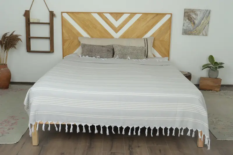 Beach Blanket Turkish Cotton Light Gray Stripes, 71x95 Inches