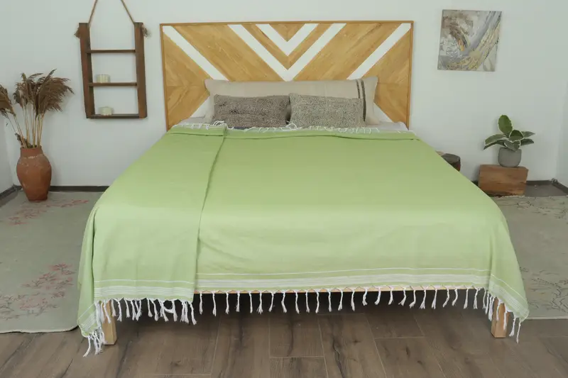 Handwoven Green Striped Blanket, Bedcover, Beach Blanket, 56x91 Inches