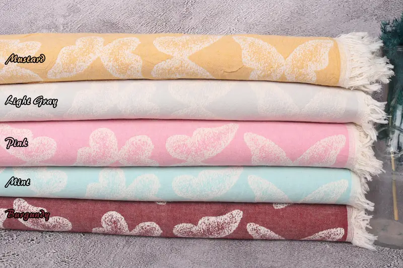 Butterfly Pattern Throw Cotton Recycled Organic, Bohemian Eclectic, 79x95 Inches