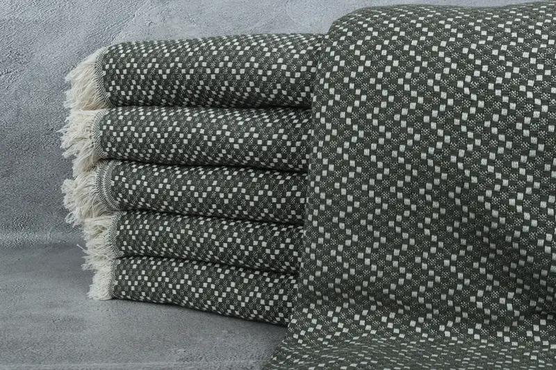 Custom Herringbone Blanket Beige Plaid, 67x75 Inches Khaki Green