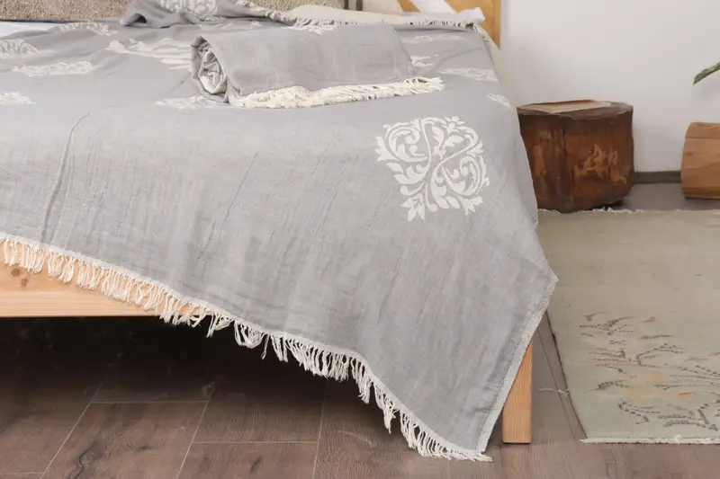 Turkish Throw Gray Blanket with Beige, 56x67 Inches
