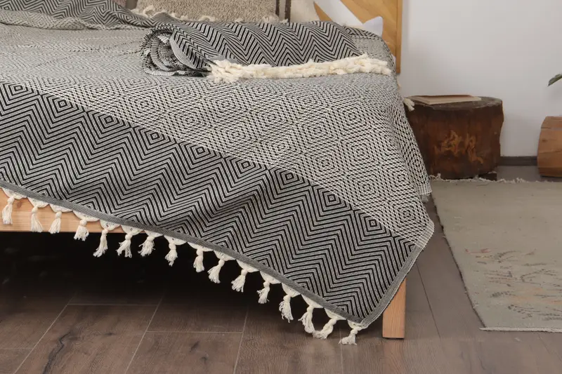 Home Decor Diamond Black Blanket, 79x91 Inches Cotton Bed Cover