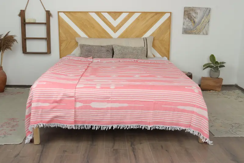 Beach Blanket Turkish Cotton Pink Patterned, 60x83 Inches