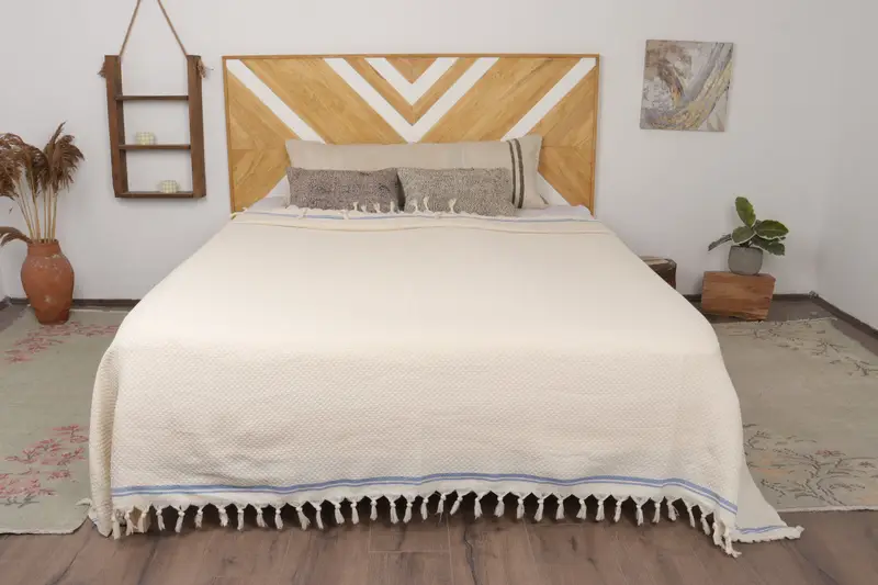 Turkish Throw Blanket Parliament Blue Striped, 91x93 Inches