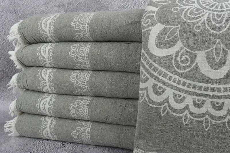 Beach Blanket Turkish Cotton Dark Green Aztec, 79x87 Inches