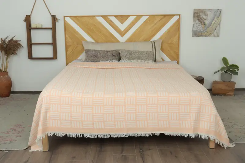 Home Decor Coral Geometric Throw, Wedding Gift Blanket, 87x95 Inches
