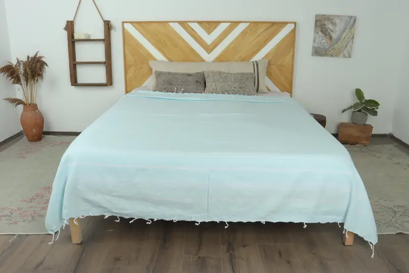 Wedding Gift Blanket, Cotton Bedspread, Mint, Striped, 63x91 Inches