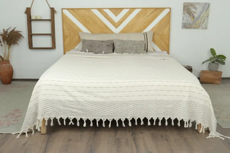 Wedding Gift Organic Turkish Striped Blanket, Brown Beige, 91x97 Inches