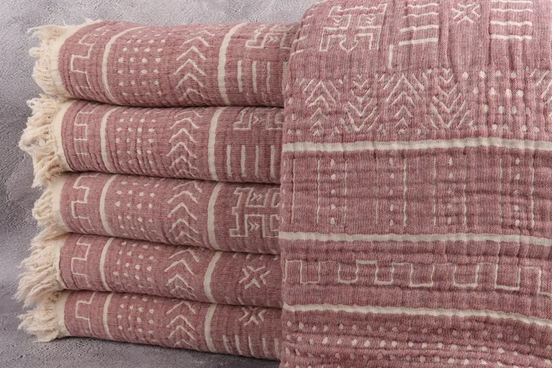 Sofa Blanket Aztec Design Beige, 79x91 Inches