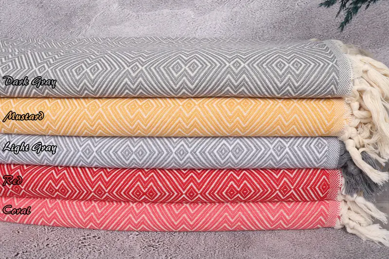 Handmade Turkish Towel, Diamond Bedspread, 79x91 Inches, Beige