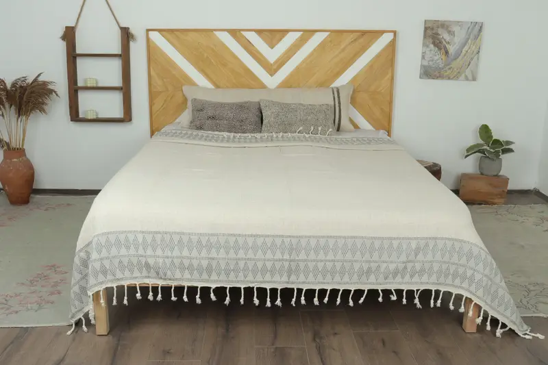 Navy Kilim Design Throw Blanket, Organic Turkish Cotton, 87x99 Inches