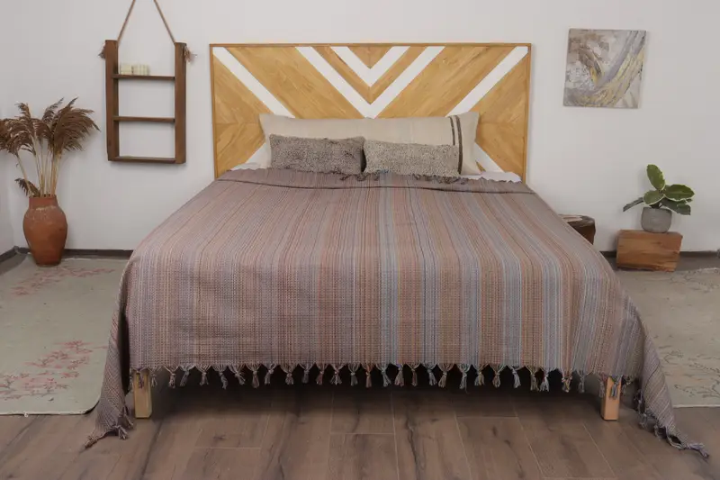 Sofa Blanket Striped Brown Beige, 87x91 Inches, Turkish Cotton