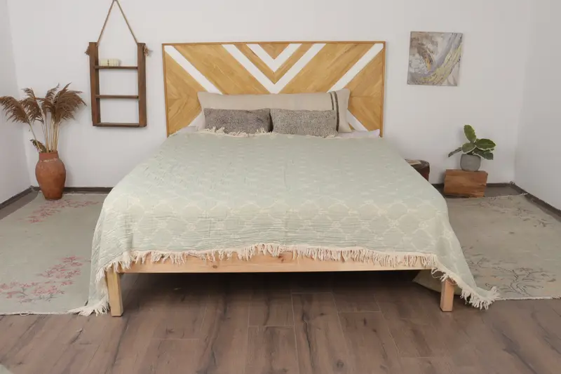 67x87 Inches Custom Woven Mint Blanket, Beige, Organic Turkish Cotton