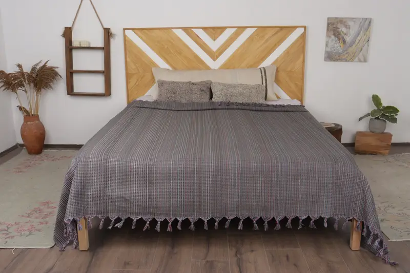 Handwoven Khaki Green Striped Throw, Picnic Blanket, 87x91 Inches