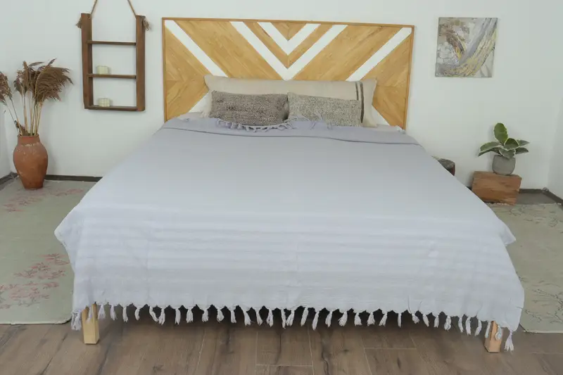 Turkish Blanket Gray Stonewashed Striped, 67x95 Inches