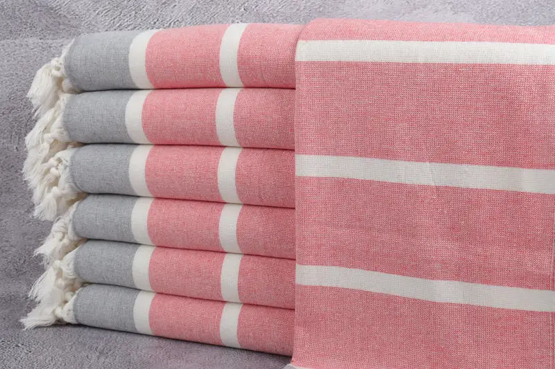 Turkish Towel Striped Peshkir, Red and Gray, Beige, 18x36 Inches